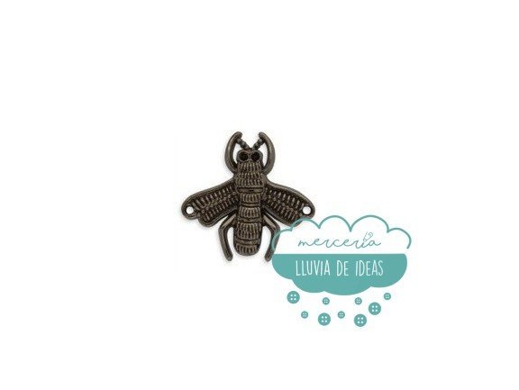 Aplicación metalizada con forma de mosca. Se pueden utilizar como elemento decorativo en cuero, ropa, calzados, bolsos... Dispone de dos agujeros para coserlas a la prenda o accesorio. Referencia: 967554. Color oro viejo tono claro 0102. Material: metal. Tamaño: ancho 28 mm. x alto 27 mm. x grosor 5 mm. aprox. El precio se refiere a la unidad.