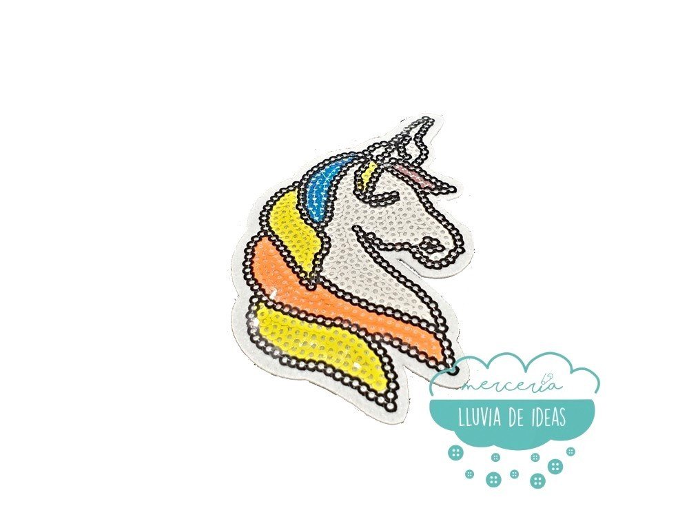 Parche termoadhesivo con lentejuelas - Serie Cabeza de unicornio con melena flúor