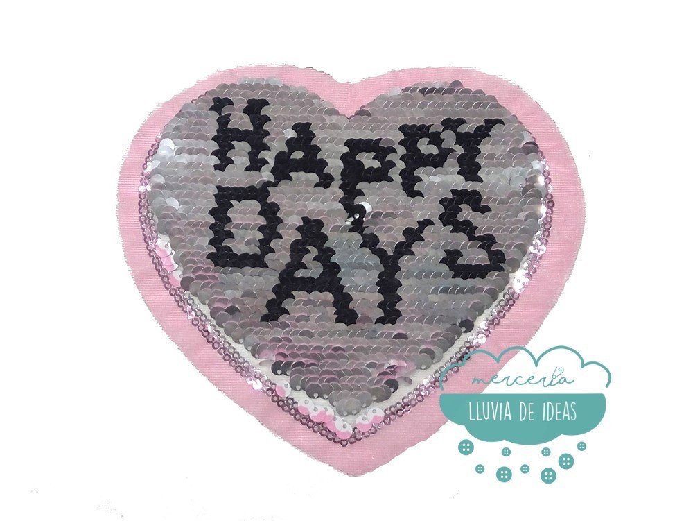 Aplicación de lentejuelas reversibles: el modelo cambia de diseño y colores pasándole la mano por encima. Con pequeñas lentejuelas rosa metalizadas en el borde del corazón. Permite la reparación y customización de prendas. Composición: 100% poliéster. Tamaño total: ancho 17 cm. x alto 15 cm. aprox. (incluyendo base de la aplicación). El precio se refiere a la unidad.
