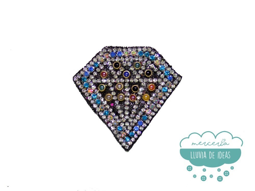 Aplicación termoadhesiva con rocalla, cristal y tachuelas de perlas - Diamante
