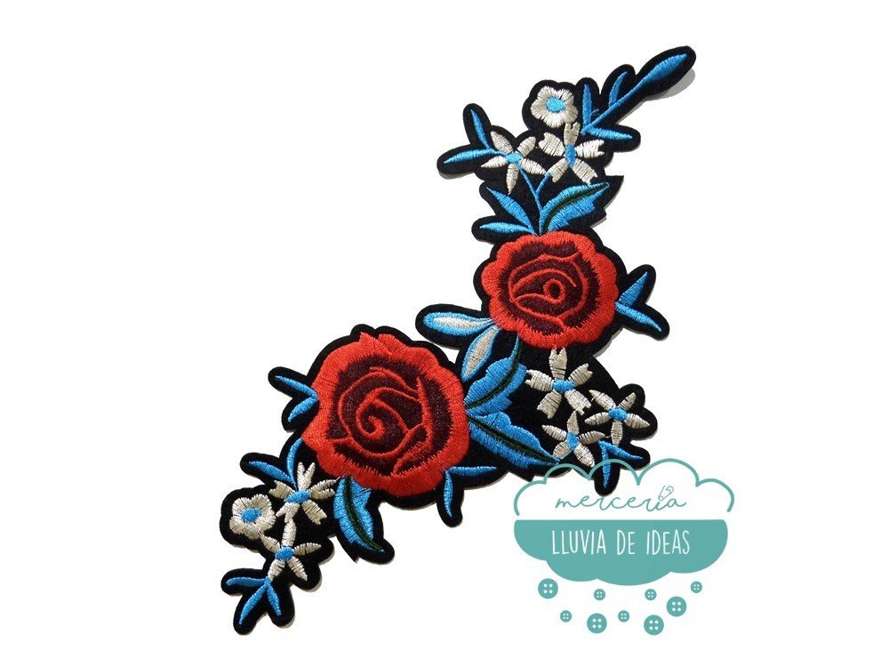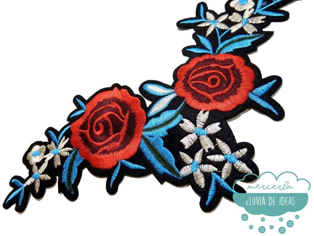 Parche bordado termoadhesivo - Rosas hojas turquesa