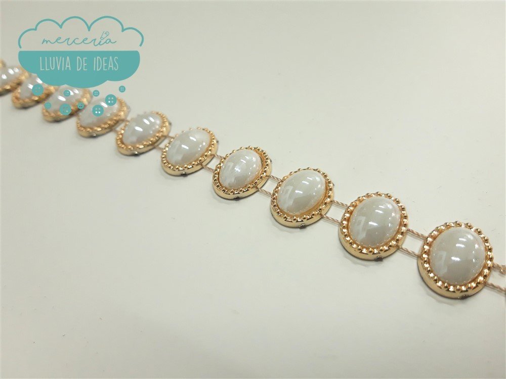 Pasamanería tipo cadeneta con perlas ovaladas - Serie Roman