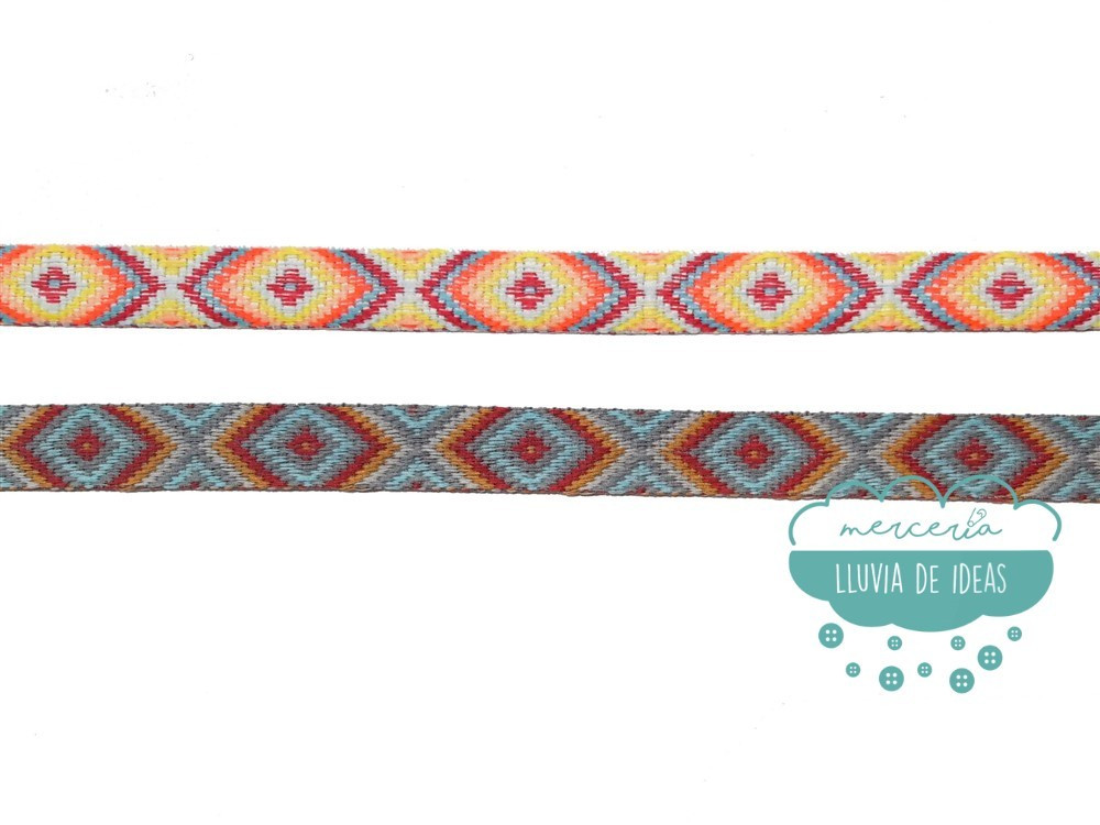 Galón o cinta tapacosturas tejida de estilo étnico.