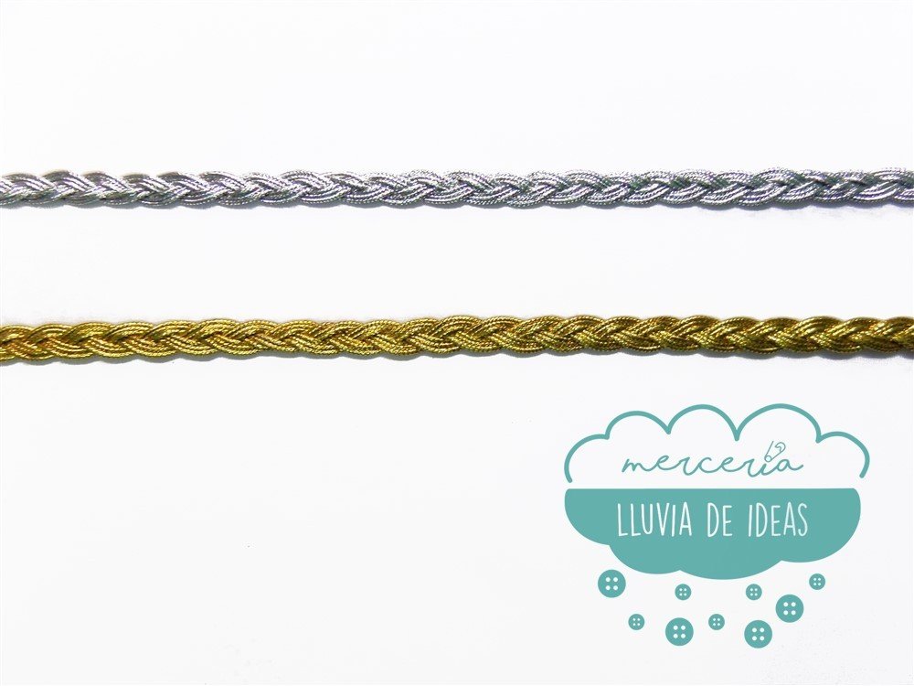 Pasamanería metalizada trenzada. Contiene hilo de lúrex.
