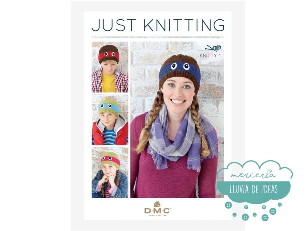 Revista de la casa DMC donde propone la creación de gorros para niño y adulto. Su diseño recuerda a las famosas "Tortujas Ninja".