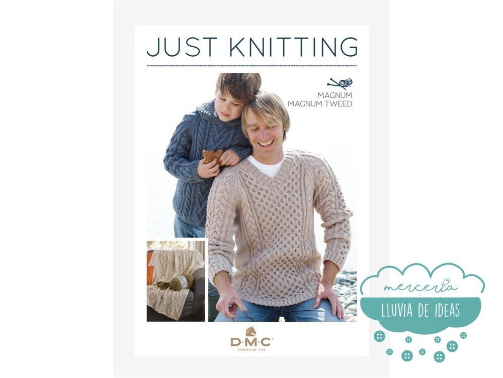 Revista de la casa DMC donde propone la creación de 3 patrones: 1 jersey infantil, 1 jersey para hombre y 1 manta.