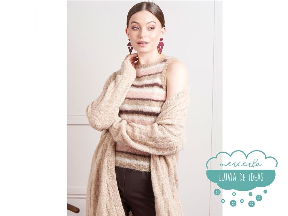 Con tonos rojizos y matices apagados, Mode at Rowan, colección 5, incluye elementos básicos de vestuario, muy versátiles y ponibles. Las diferentes texturas se combinan con una definición de puntadas muy elegantes para crear prendas llamativas y bonitas.