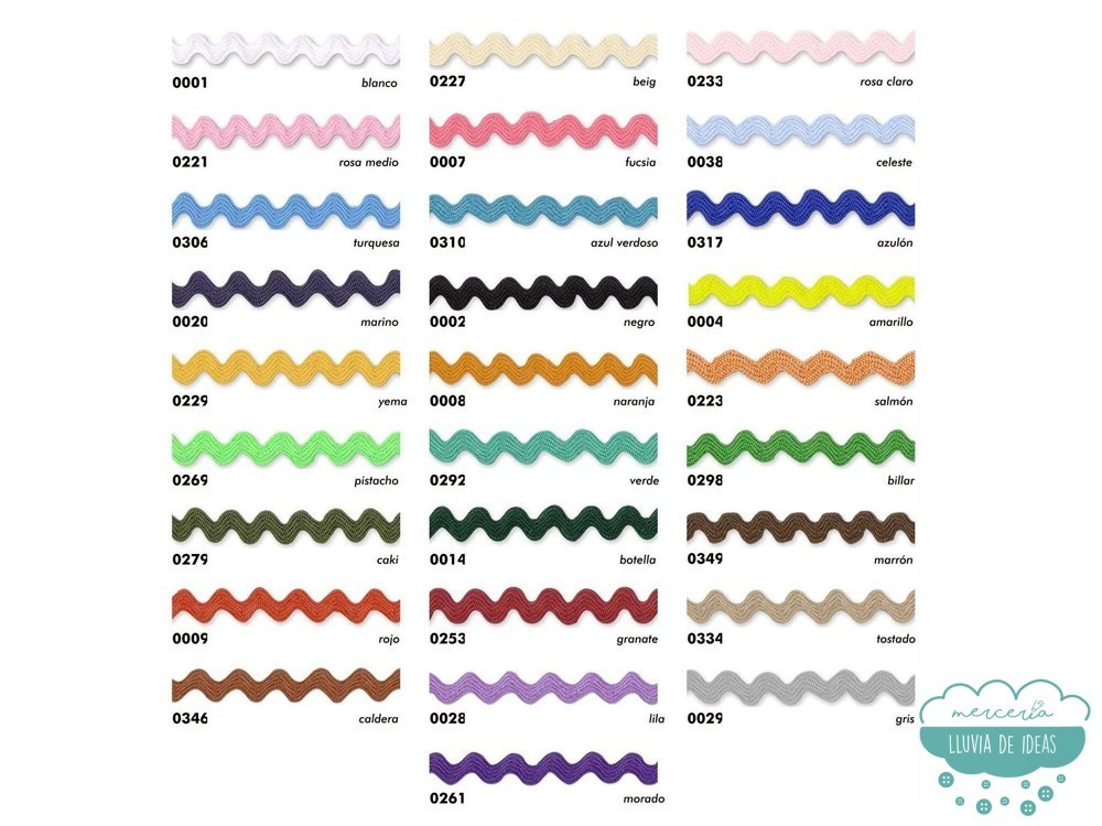 Cinta Zig zag / picunela / ondulina / tripa de pollo - Ancho 2 cm. - Varios colores