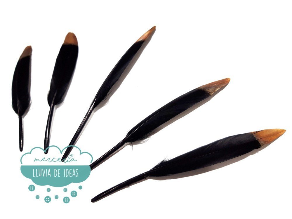Pluma de pato negra con punta dorada