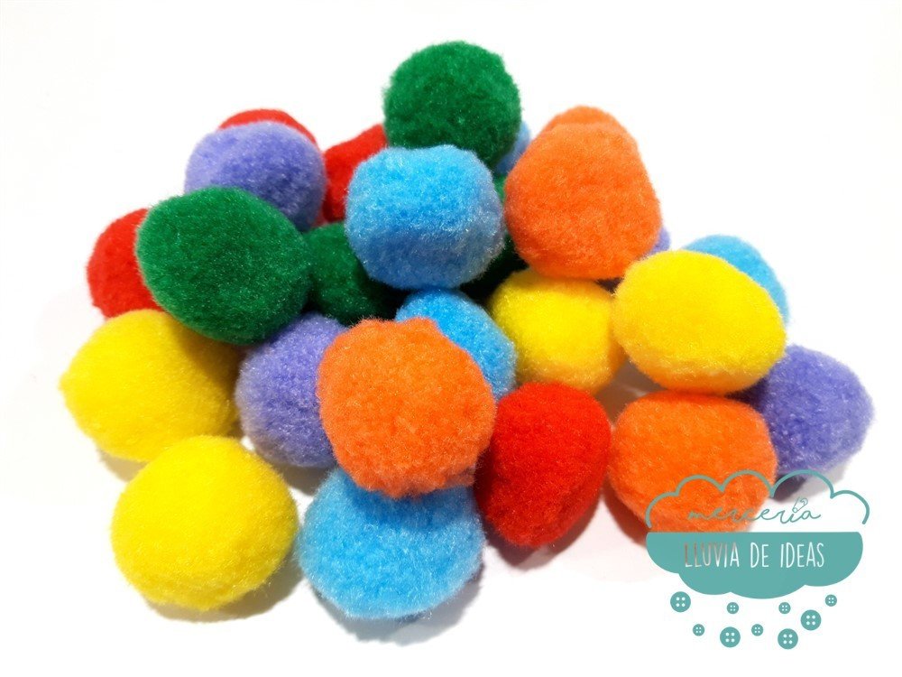 Pompones acrílicos ideales para decoraciones, customización de prendas y todo tipo de manualidades. Disponibles en colores vivos. También conocidos como madroños sueltos. Para decorar prendas se pueden coser al tejido (método más seguro) o pegar con pegamento textil.