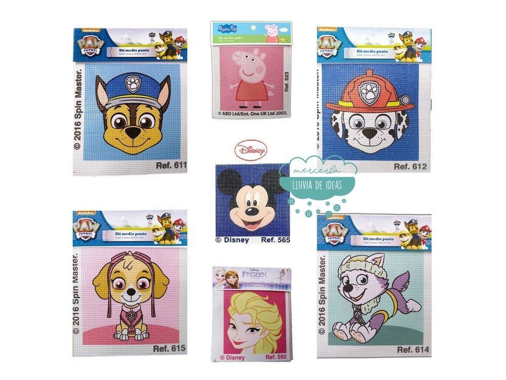 Kit creativo de bordado infantil medio punto con estampación de personajes de series y películas infantiles.
