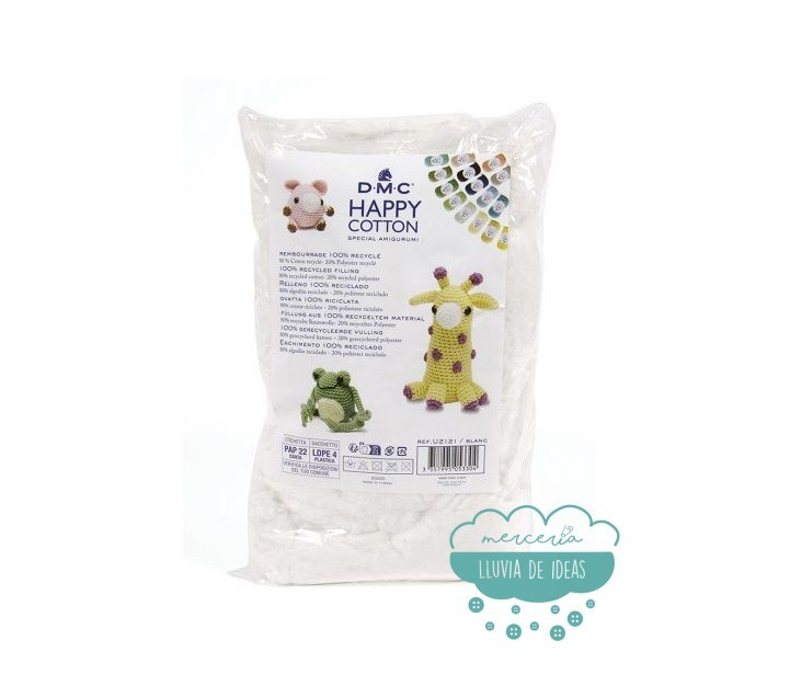 Relleno especial amigurumi 100% reciclado de la marca DMC. Conserva la forma después del lavado. Ideal para rellenar y dar volumen a muñecas, peluches, amigurumis, etc. Es conveniente rellenar y masajear la labor realizada para que coja la forma deseada.