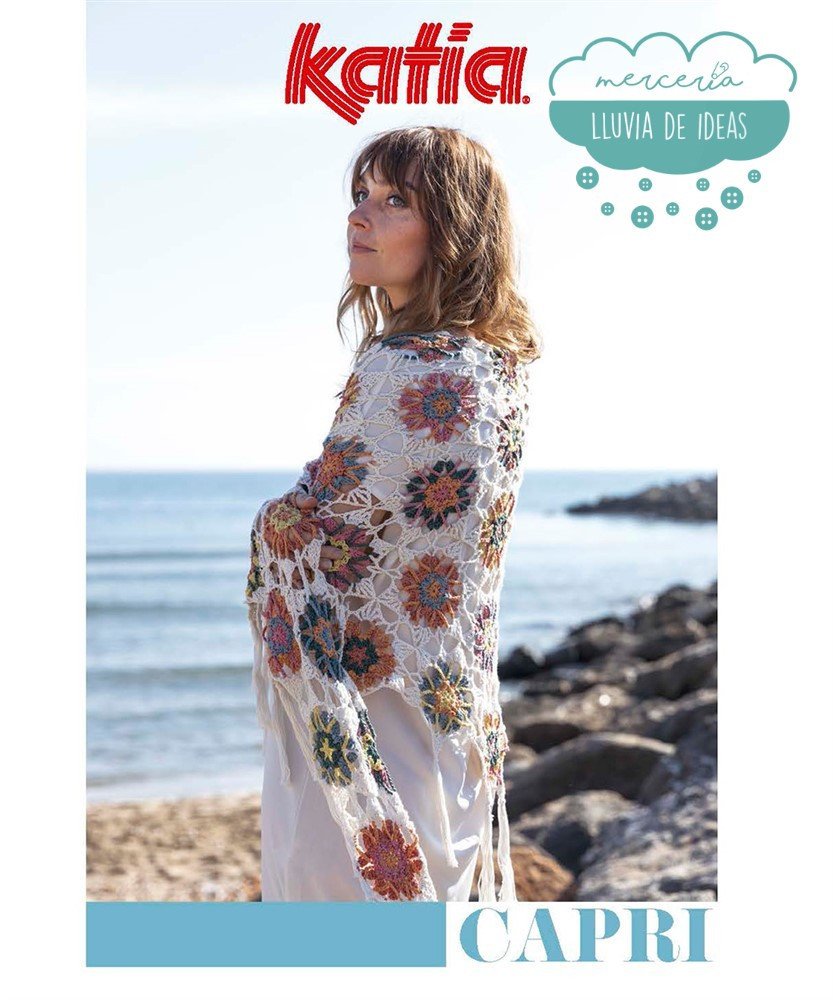 La Revista Crochet Capri de Katia presenta una colección de 8 patrones a ganchillo donde podrás tejer 3 elegantes accesorios (una bufanda, un bolso y un chal), 4 elementos decorativos únicos (colcha o plaid, cojines, atrapasueños) y un encantador amigurumi, recomendados para trabajar con el algodón mercerizado 100% Katia Capri o cualquier otra calidad de algodón equivalente.