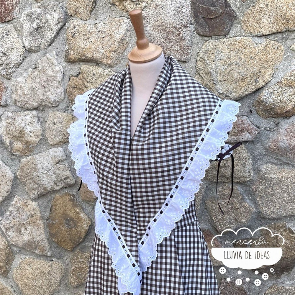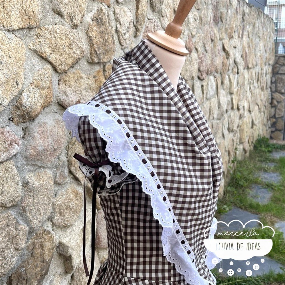 Está disponible desde la talla 36 hasta la 52. y resulta perfecto para confeccionar un vestido único con el que destacar en romerías, ferias y celebraciones.