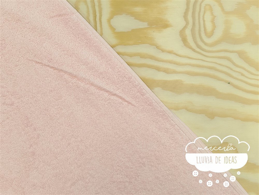 Rizo toalla rosa bebé 100% algodón. También llamado felpa o tela de toalla, de rizo americano, con mucho cuerpo, de tacto agradable. Gruesa y esponjosa. Viene rematada en los orillos. Es ideal para confeccionar toallas, arrullos y capas de baño, baberos, cambiadores, trapos de cocina, protectores, albornoces, etc.