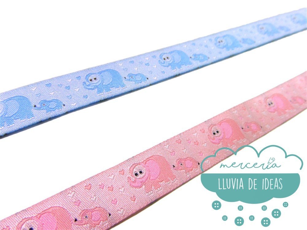 Tapacosturas infantil con motivos de elefantes y corazones. Ancho 15 mm. aprox. Composición: 100% poliéster. Referencia: P2119 Cinta bordada que tal como su nombre indica, se emplea para tapar costuras. También se puede emplear para decorar.