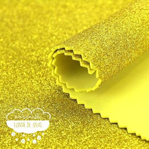 La goma EVA con purpurina o goma EVA Glitter está indicada para confeccionar disfraces, manualidades, trabajos escolares, escenografías y decoración de eventos, Navidad, etc. Su curioso nombre "EVA" proviene de "Ethylene Vinyl Acetate". También se la conoce como Foami con purpurina.