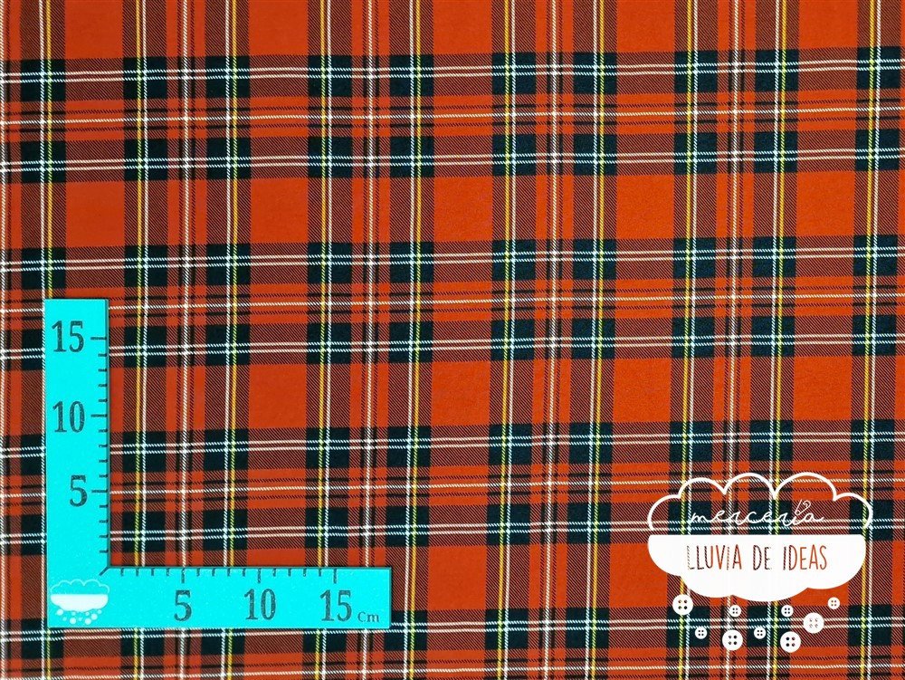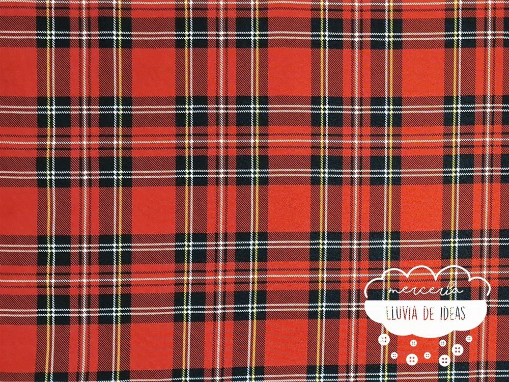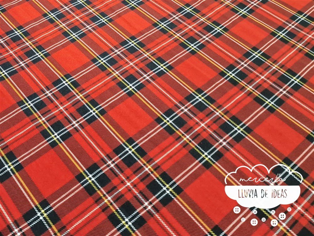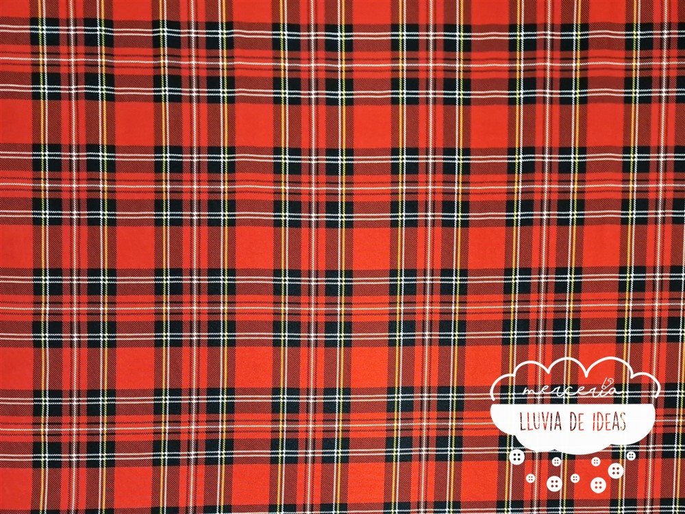 El stretch cuadros escoceses es un tejido de poliéster, una tela plana semejante al crep, con un grosor medio y con caída. Es bastante tupido aunque no es totalmente opaco, pero no suele ser necesario forrarlo por posibles transparencias (en confección de moda siempre será recomendable por comodidad). Apenas notarás diferencia entre la cara buena y su revés ya que son muy similares.