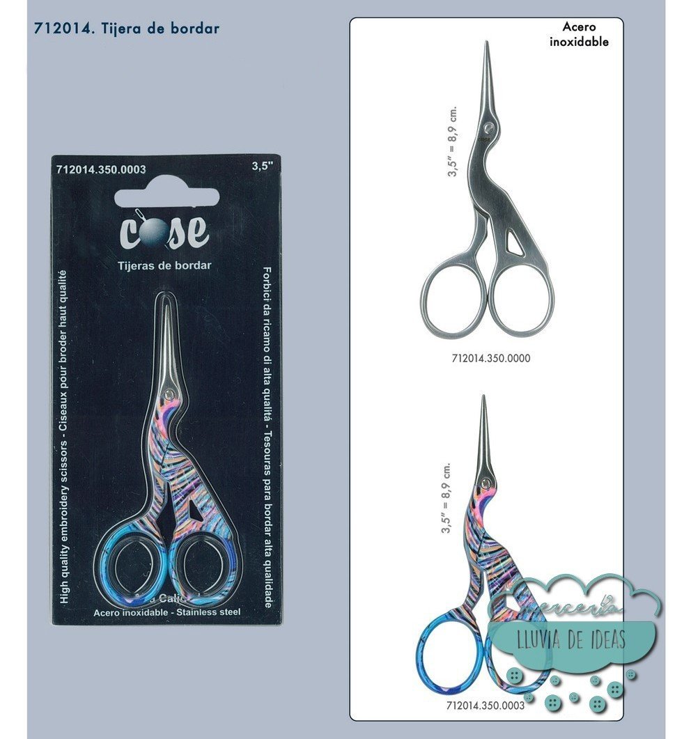 Tijera de bordar de alta calidad con forma de garza. De acero inoxidable.